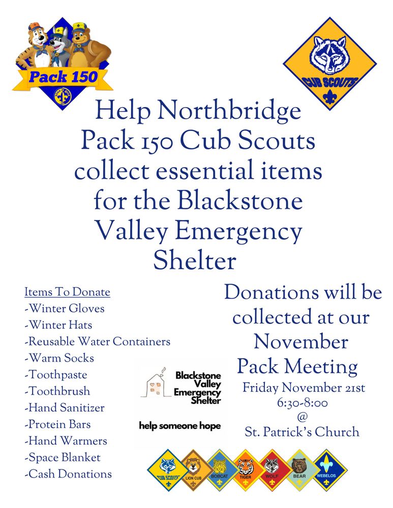 Pack 150 will be hosting a baked potato fundraiser on May 9th @ St. Patrick's church. Come get a baked potato with chili, cheese, or many other toppings for $5.